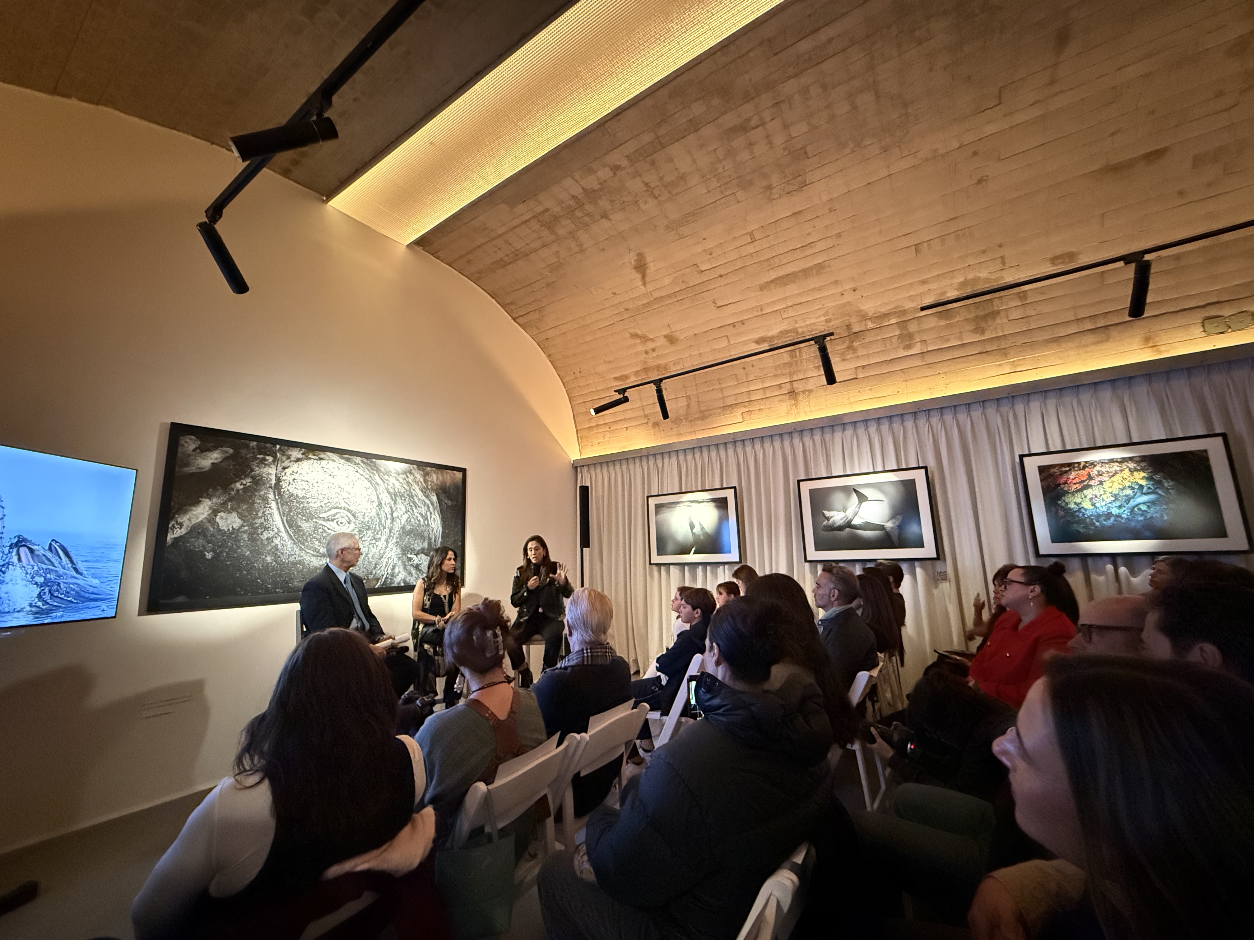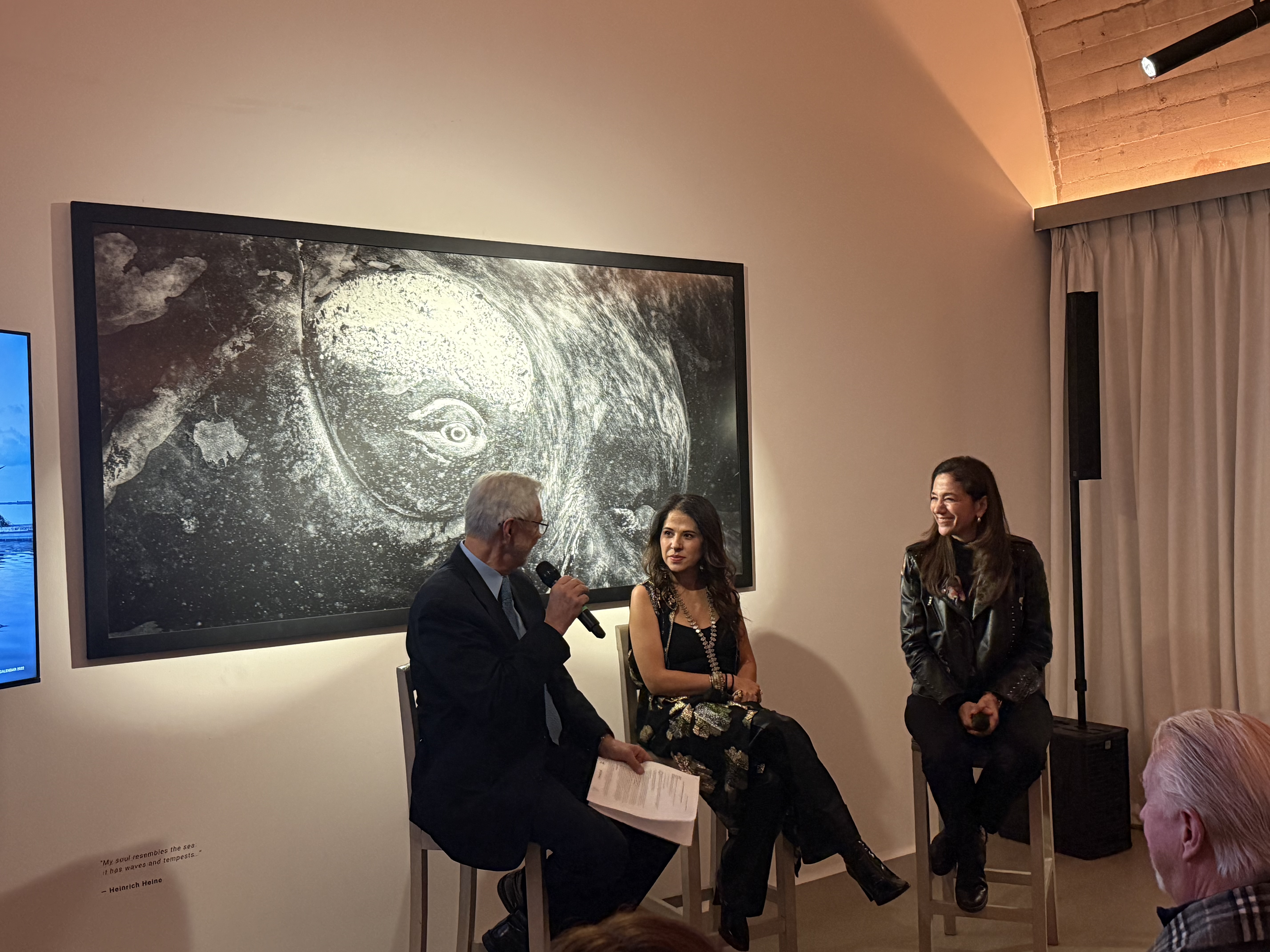 La conversación se desarrolló en un ambiente cordial y enriquecedor entre el Dr. José Luis Samaniego Leyva, Cristina Goettsch Mittermeier y Gabriela Gómez, quienes compartieron experiencias, perspectivas y reflexiones sobre los retos ambientales actuales, particularmente en materia de conservación marina.